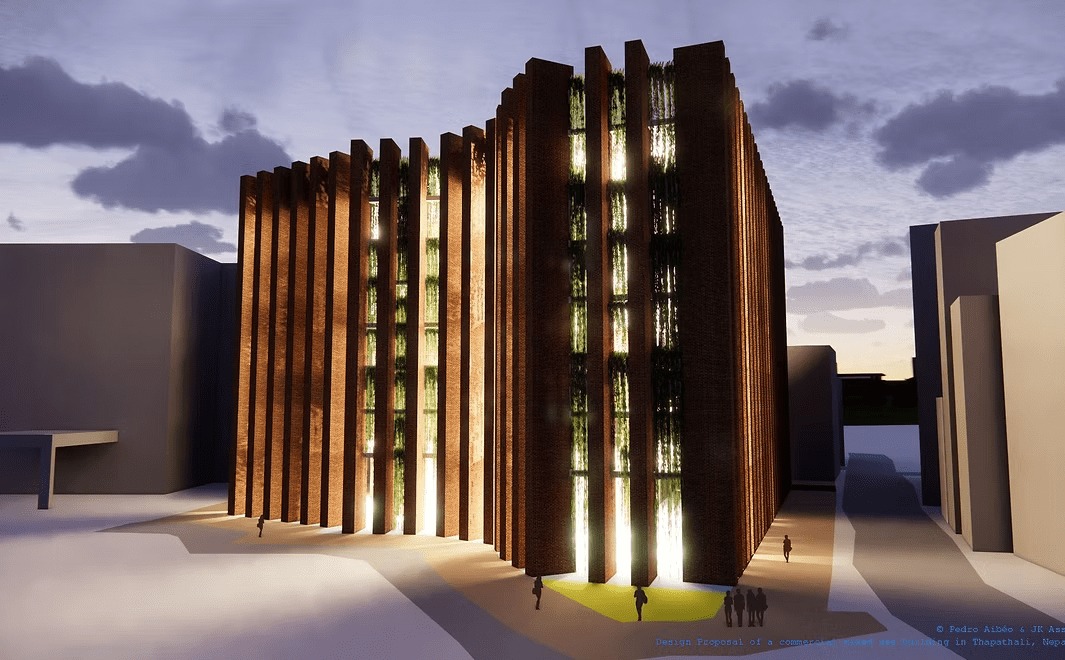 The design introduces elongated façade elements that act as natural air filters, improving environmental quality while contributing to the building’s visual identity. Given the depth of the plot, a strong inner courtyard becomes the central organizing element, allowing ample sunlight to penetrate deep into the structure and creating a vibrant spatial core.